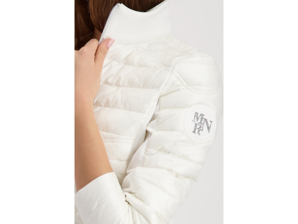 Prošívaná bunda Monari v jemném off-white odstínu. Kombinace lesklého materiálu a pohodlného úpletu se stříbrnými detaily vás rozzáří každý den.