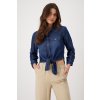 Modrá jeans halenka Monari okouzlí svou uvolněnou elegancí a ženskými detaily. Měkký denim v tmavě modré barvě zajišťuje příjemné nošení, zatímco střih s uzlem v pase krásně tvaruje siluetu. Halenka má dlouhé rukávy s možností ohrnutí a dvě náprsní kapsy na druky. Skvěle se hodí k ležérním kalhotám i sukni pro moderní městský styl.