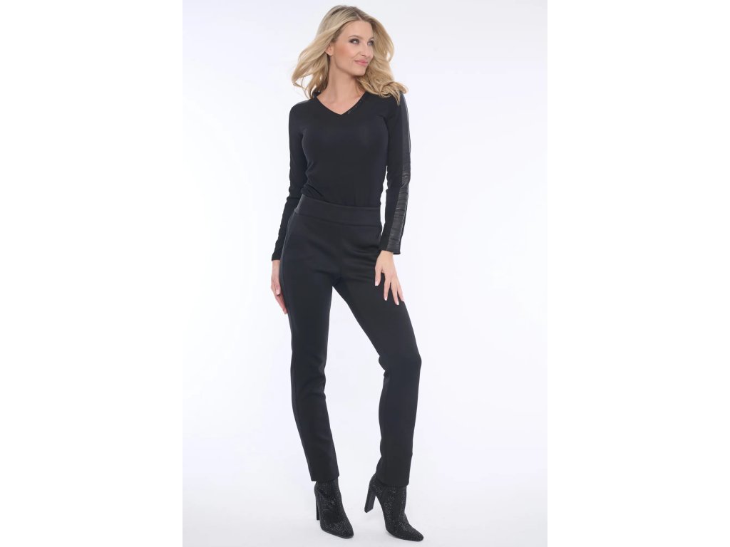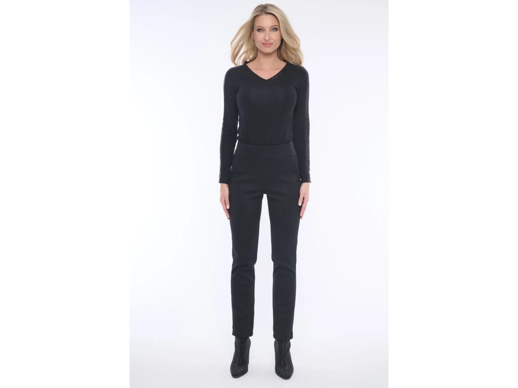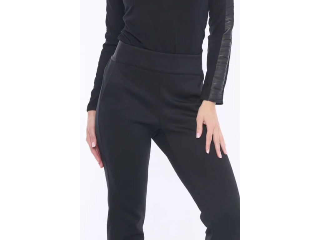 Elegantní černé kalhoty značky Infinite jsou skvělou volbou pro ženy, které chtějí pohodlí bez kompromisů ve stylu. Vyrobeny z kvalitního materiálu s elastickou gumou v pase, krásně sedí na postavě a neomezují v pohybu. Jednoduchý střih je doplněn jemným zdobením z krystalů Preciosa, které kalhotám dodávají nádech luxusu. Perfektně se hodí do kompletu s mikinou ve stejném stylu – využijete je jak na volný čas, tak i na ležérní outfit do kanceláře.