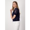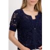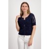 Elegantní tmavě modrý kardigan Monari s krajkovým vzorem a krátkými rukávy.
