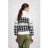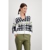 Tento stylový kardigan od Monari je skvělým kouskem pro chladné dny. Je vyroben z příjemného materiálu, který vás zahřeje a zároveň nabídne pohodlí během celého dne. Kardigan má výrazný černobílý vzor, doplněný o jemné olivové pruhy a logo značky. Díky klasickému střihu a zapínání na zip je velmi praktický a snadno kombinovatelný s různými outfity, ať už na volný čas nebo do práce.