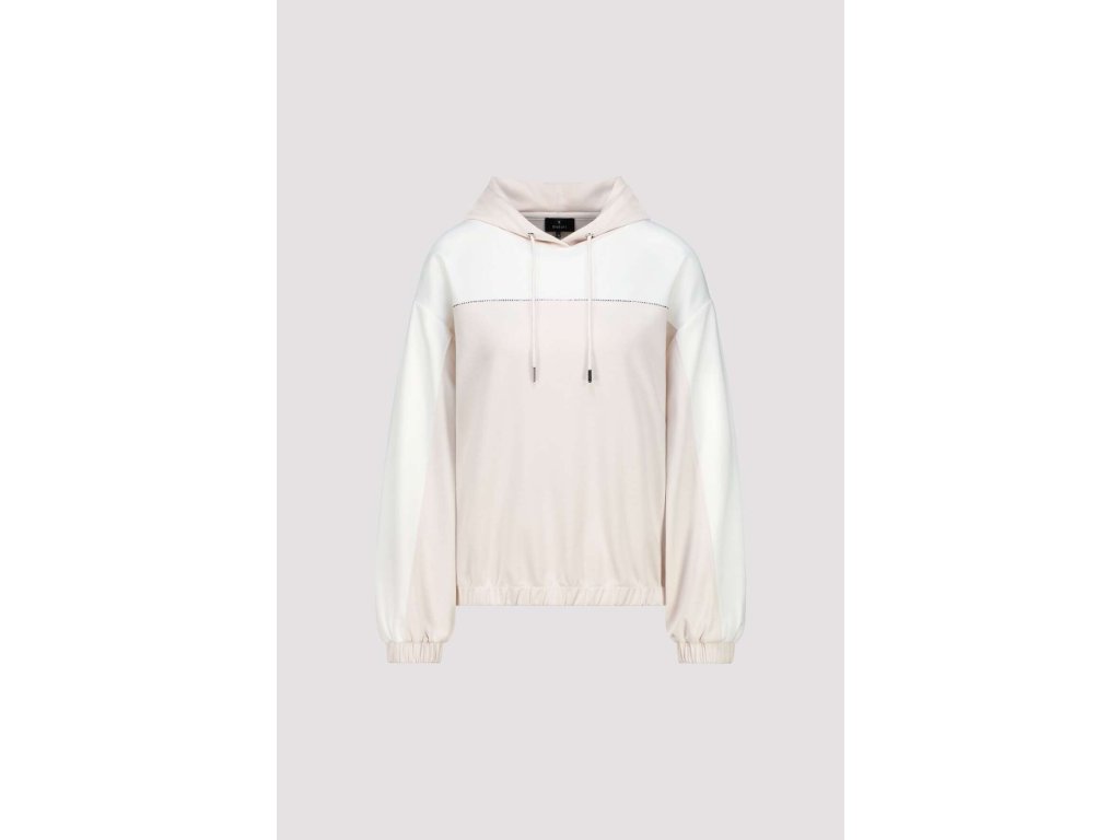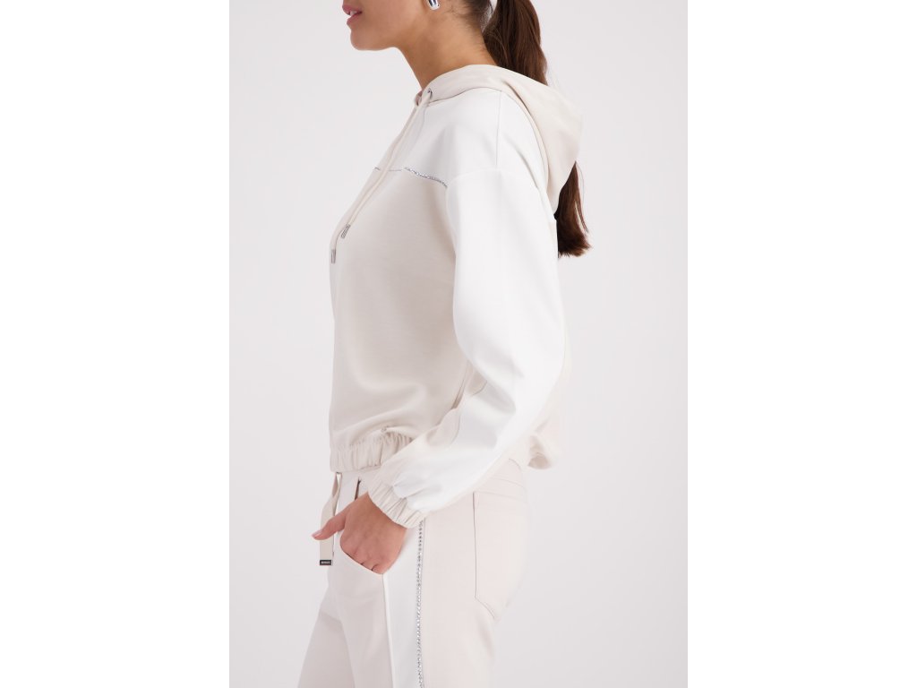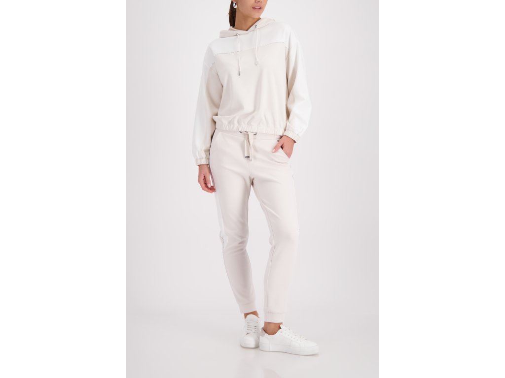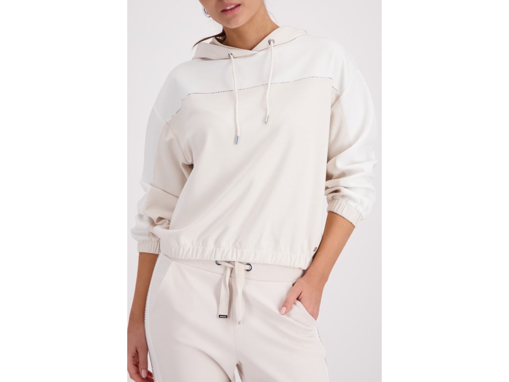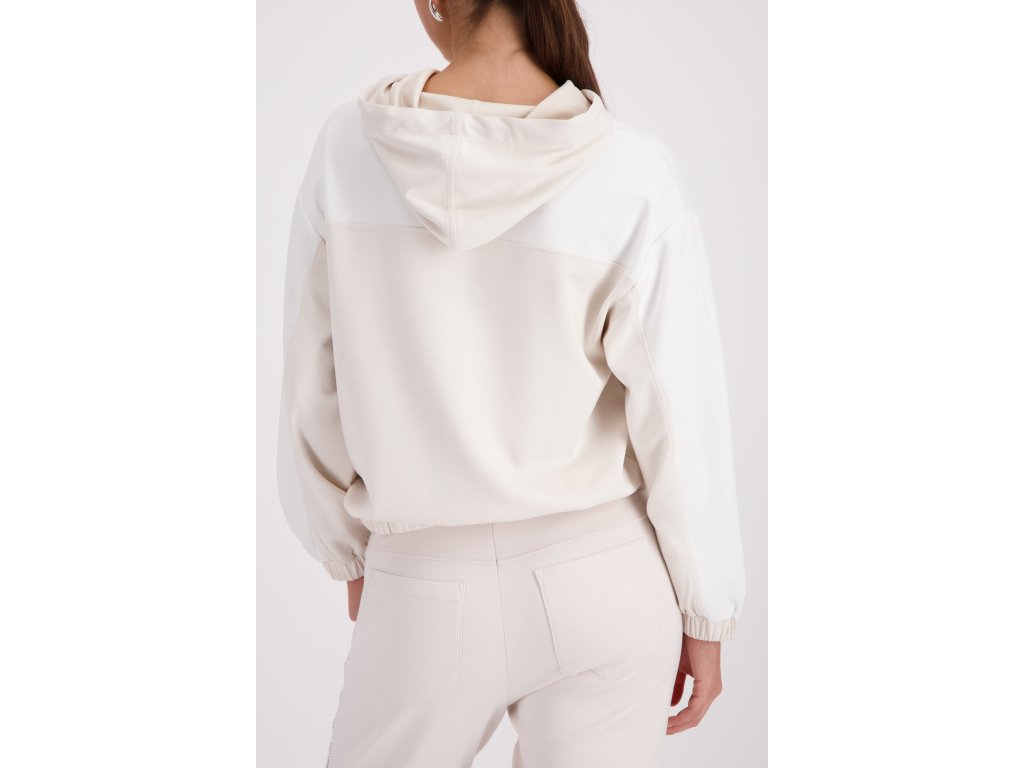 Hledáte kousek, který spojuje maximální pohodlí s kapkou nenápadné elegance? Dvoubarevná mikina Monari v něžném champagne a bílém odstínu vás nadchne na první obléknutí. Hladký, na dotek velmi příjemný úpletový materiál si zkrátka zamilujete. Má volnější, mírně zkrácený střih se spadenými rameny, který lichotí postavě a dává volnost pohybu. Rukávy i spodní lem jsou prakticky zakončené pružnou gumičkou.
