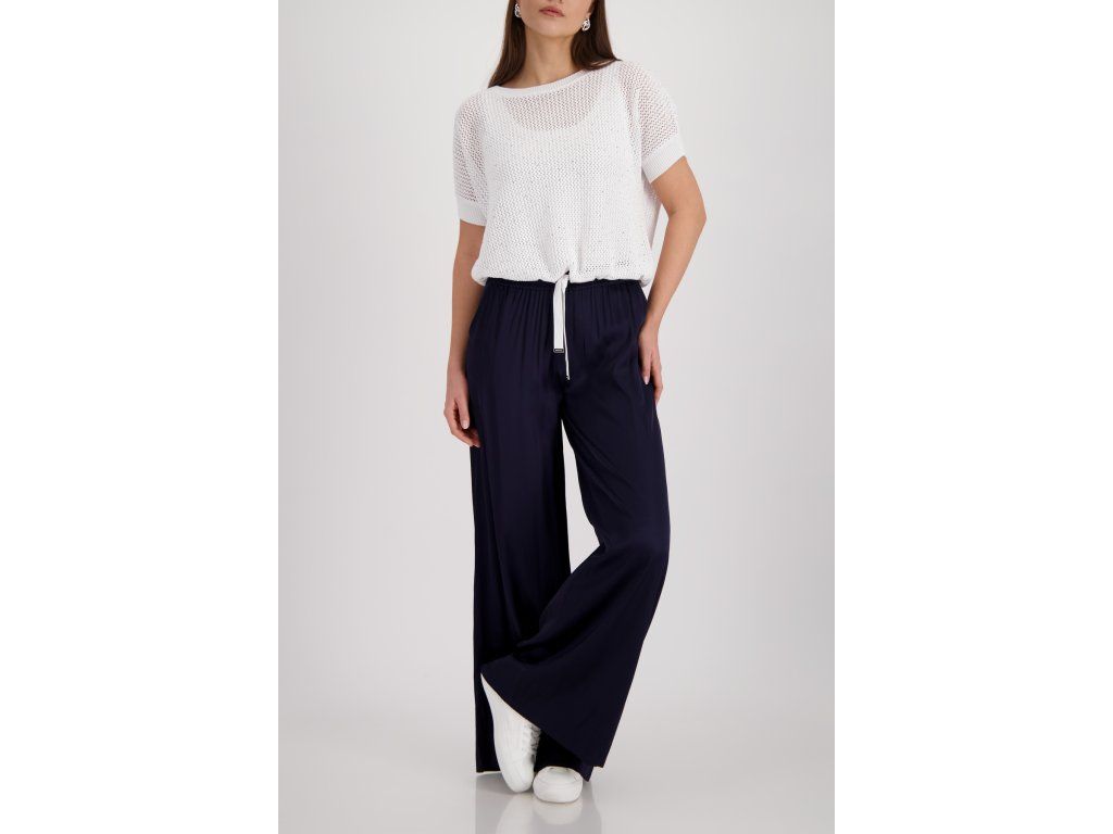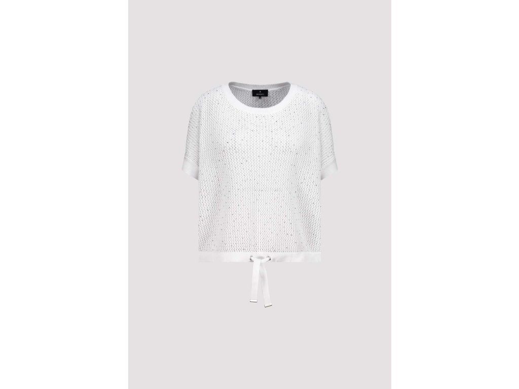 Háčkované triko Monari ve smetanové barvě ze 100% bavlny. Volný střih s kulatým výstřihem a stahovací šňůrkou v lemu.