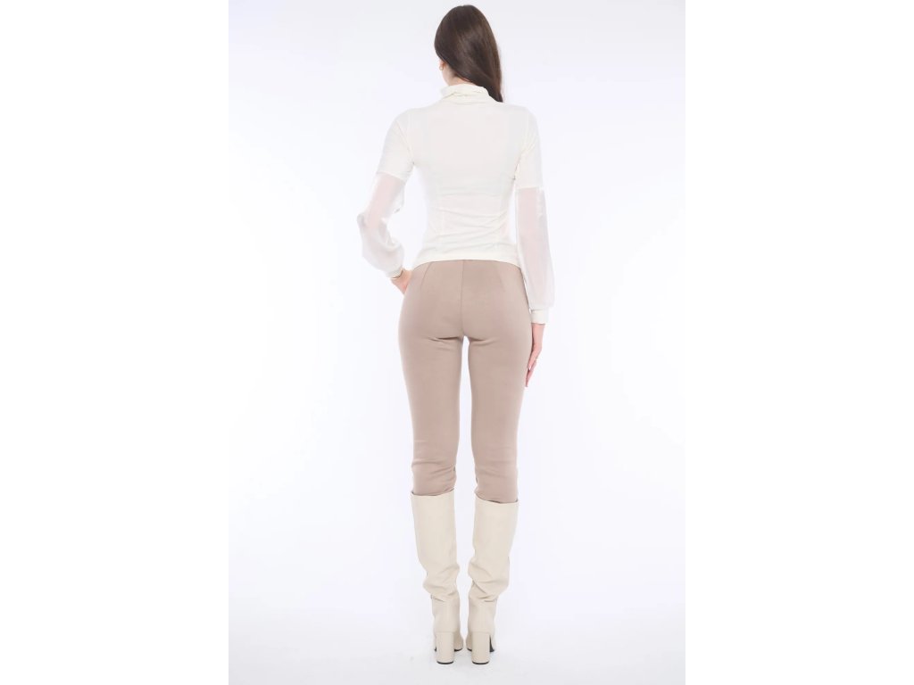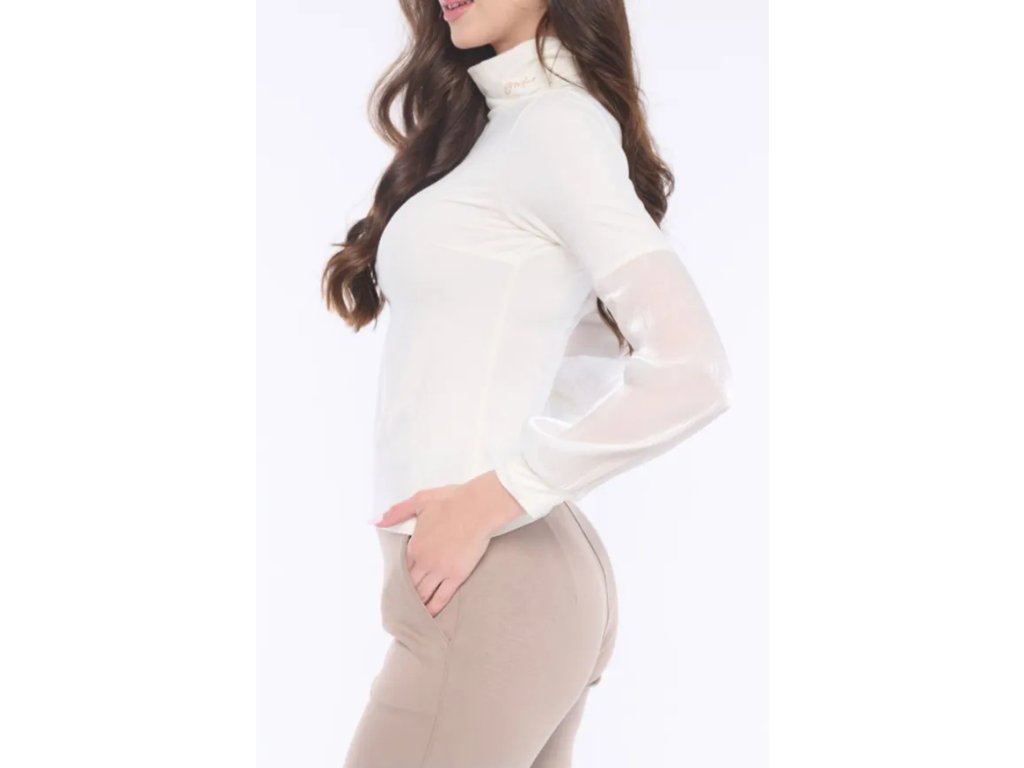 Elegantní smetanový rolák značky Infinite je spojením pohodlí a luxusu. Jeho přiléhavý střih krásně zvýrazní siluetu, zatímco volné, lesklé rukávy z jemného materiálu dodávají outfitu romantický a sofistikovaný nádech. Na stojáčku nechybí decentní krystaly Swarovski, které celý model jemně rozzáří. Perfektní volba jak na běžné nošení, tak i na slavnostnější příležitosti.