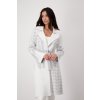 Tento šedobílý svetr Monari, zdobený klasickým vzorem herringbone, je synonymem sofistikované elegance. Jeho jemná barva a vzor doplní vaši garderobu o kousek, který je nenápadně výjimečný. S pohodlným páskem na zavázání v pase, tento plášť nabízí nejen styl, ale i funkčnost, udrží vás v teple a zároveň podtrhne vaši siluetu.