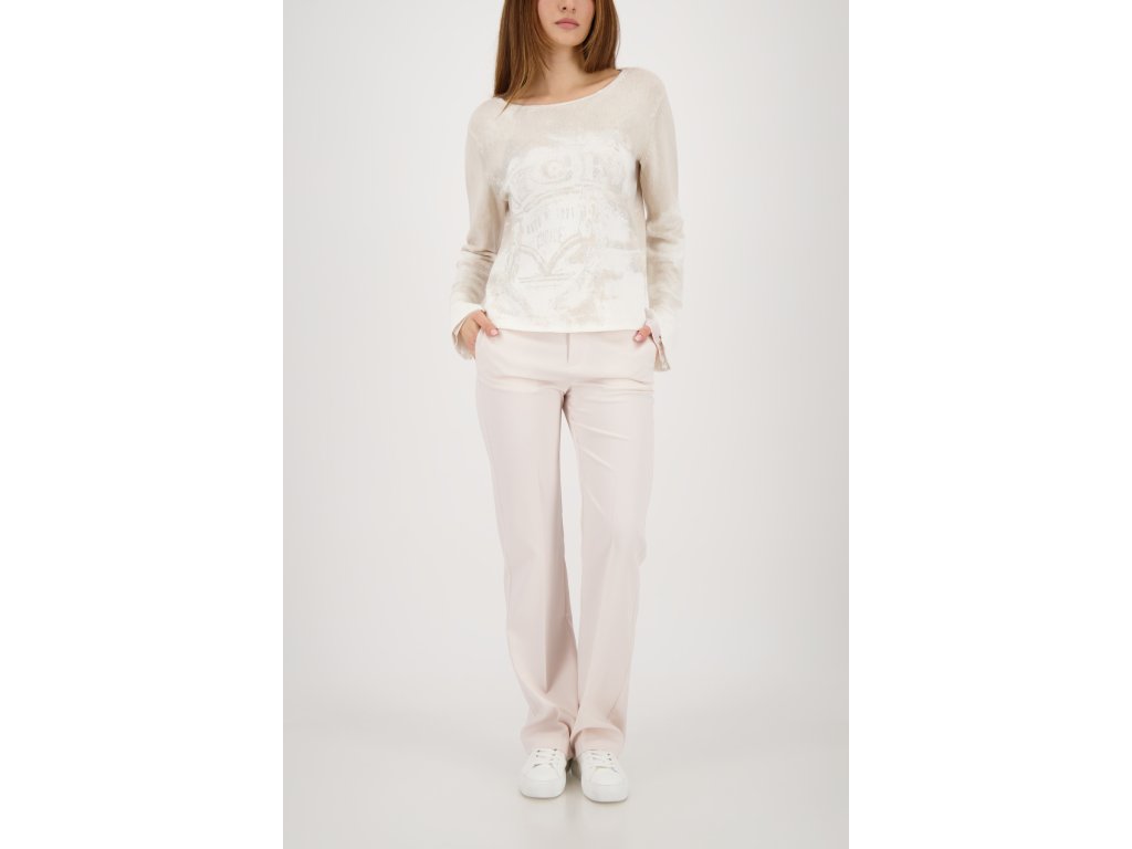 Elegantní svetr Monari v odstínu champagne vás okouzlí jemným úpletem, třpytivým potiskem a detaily ze šifonu.