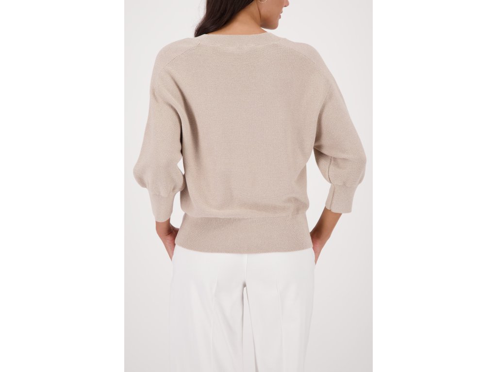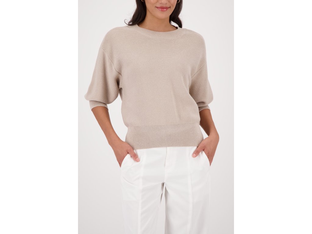 Oživte svůj šatník pískovým svetrem Monari! Elegantní jemný úplet, volnější střih a šik 3/4 balónové rukávy dodají vašemu outfitu ten správný šmrnc.