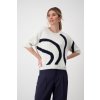 Měkký bílý svetr Monari s moderním černým vzorem a krátkými rukávy, ideální pro každodenní pohodlí.