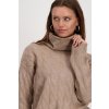 Béžový svetr Monari je ideální volbou na chladné dny. Rolákový střih nejen zahřeje, ale zároveň působí elegantně. Svetr je zdoben jemným copánkovým vzorem, který mu dodává jedinečnost. Vyroben z příjemného materiálu, je měkký na dotek a pohodlný na nošení. Dlouhé rukávy a volnější střih zajišťují komfort, zatímco neutrální béžová barva se snadno kombinuje s džínami i elegantními kalhotami. Perfektní pro volný čas i pracovní den.