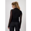 Černý svetr Monari vás okouzlí sofistikovaným designem. Jeho průhledné rukávy z jemného tylu dodávají modelu lehkost a eleganci. Třpytivé vertikální detaily na přední straně krásně prodlužují postavu a přidávají slavnostní nádech. Svetr má stojáček a přiléhavý střih, který lichotí ženské siluetě. Perfektně se hodí k formálním kalhotám nebo sukni na večerní akce i společenské události.