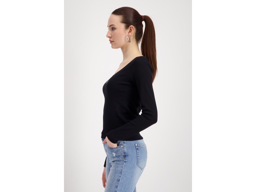 Elegantní černý svetr Monari s kamínky na hrudi – ideální volba pro stylové dny i večery.