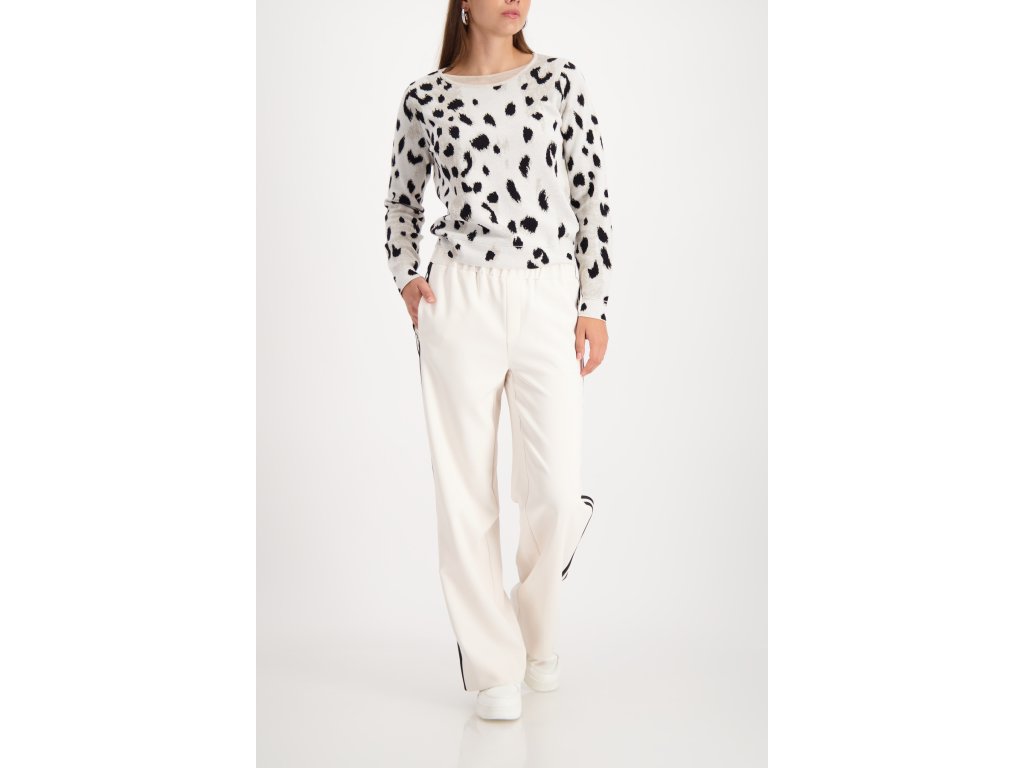 Dopřejte si styl s tímto úpletovým svetrem značky Monari. Zaujme vás nadčasovým leopardím potiskem v černo-krémové kombinaci. Pohodlný rovný střih s pružnými lemy lichotí postavě a kulatý výstřih zdobí efektivní dvojitý lem. Díky kvalitnímu měkkému materiálu se budete cítit skvěle celý den. Tento kousek perfektně sladíte s elegantními kalhotami do práce nebo s džíny na volný čas.