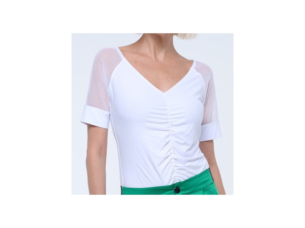 Oživte svůj šatník s tímto Infinite tričkem, které kombinuje klasiku s netradičním. Bílý základ je oživen poloprůhlednými rukávy a elegantním ruchováním na přední straně. Vyrobeno z lehkých materiálů pro maximální komfort, toto tričko slibuje pohodlí od rána do večera. Jemný detail značky na rukávu a V-výstřih lichotí postavě. Tričko, které je vhodné jak do práce, tak na večerní posezení s přáteli.