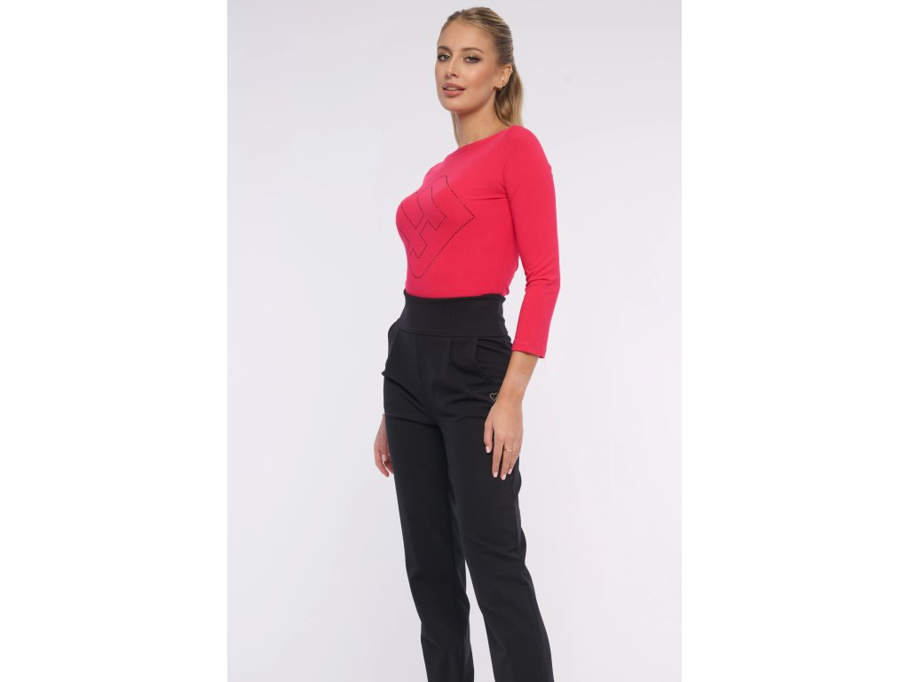 Hledáte ten pravý kousek, který okamžitě rozzáří váš den i pleť? Tohle nádherné korálové triko od české značky Infinite je přesně to, co potřebujete! Zaujme vás rafinovaným lodičkovým výstřihem, který elegantně poodhalí šíji, a praktickými tříčtvrtečními rukávy lichotícími pažím. Skutečnou dominantou je pak nepřehlédnutelné logo na hrudi, které je precizně vyskládané z luxusních krystalů Preciosa. Díky vysokému podílu viskózy a kapce elastanu je materiál neuvěřitelně hebký, prodyšný a krásně se přizpůsobí vaší siluetě. Tento klenot snadno sladíte s černými kalhotami s vysokým pasem do práce, nebo ho doplňte oblíbenou bundičkou pro víkendový relax.