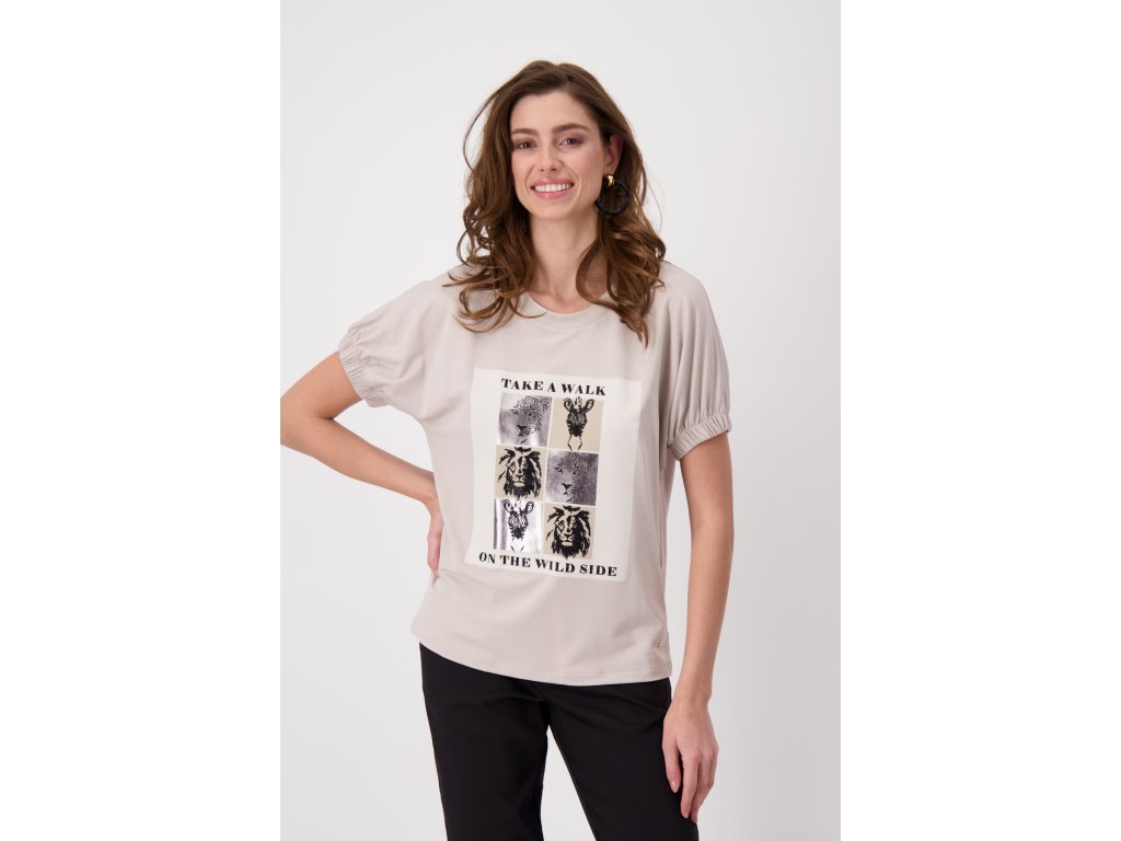 Tričko Monari přináší kombinaci pohodlí a stylu s výrazným potiskem "Take a Walk on the Wild Side". Vyrobené z měkkého a příjemného materiálu, který zajistí komfort po celý den. Volný střih a elastické rukávy dodávají tričku moderní vzhled, který se skvěle hodí jak k džínám, tak k elegantním kalhotám. Ideální pro každodenní nošení, kdy chcete vypadat dobře a zároveň se cítit pohodlně. Oživte svůj šatník tímto jedinečným kouskem od Monari.