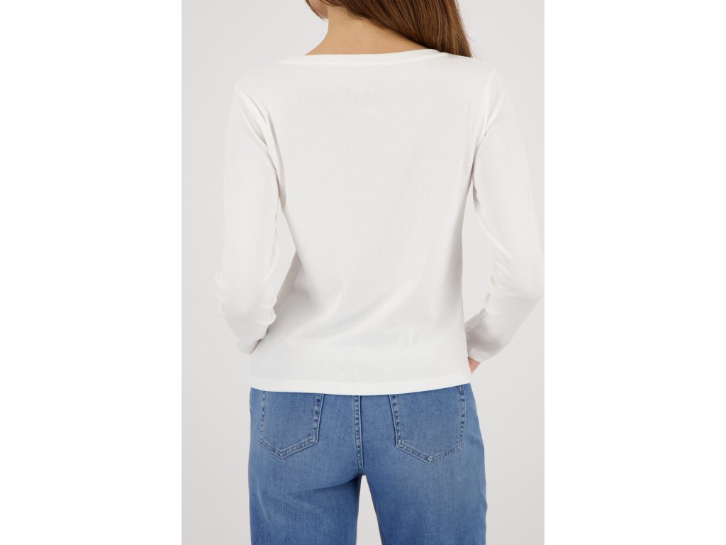 Sněte o dálkách s tričkem Monari! Bílý žebrovaný top s potiskem krajiny a třpytivými kamínky dodá vašemu dni nádech luxusu.