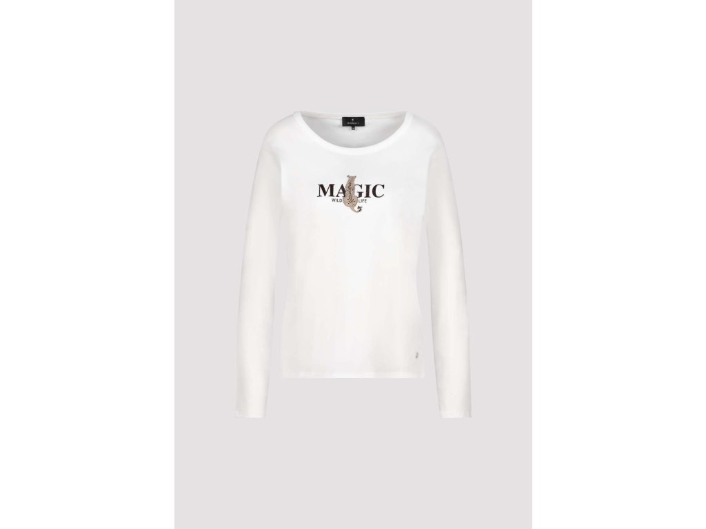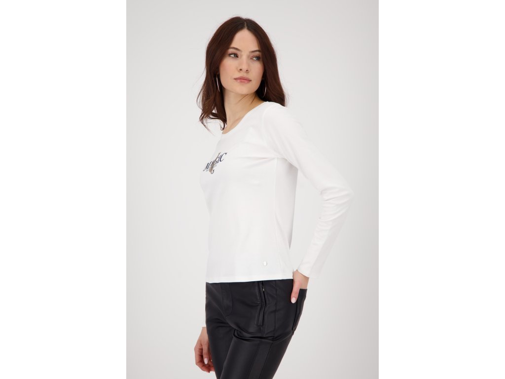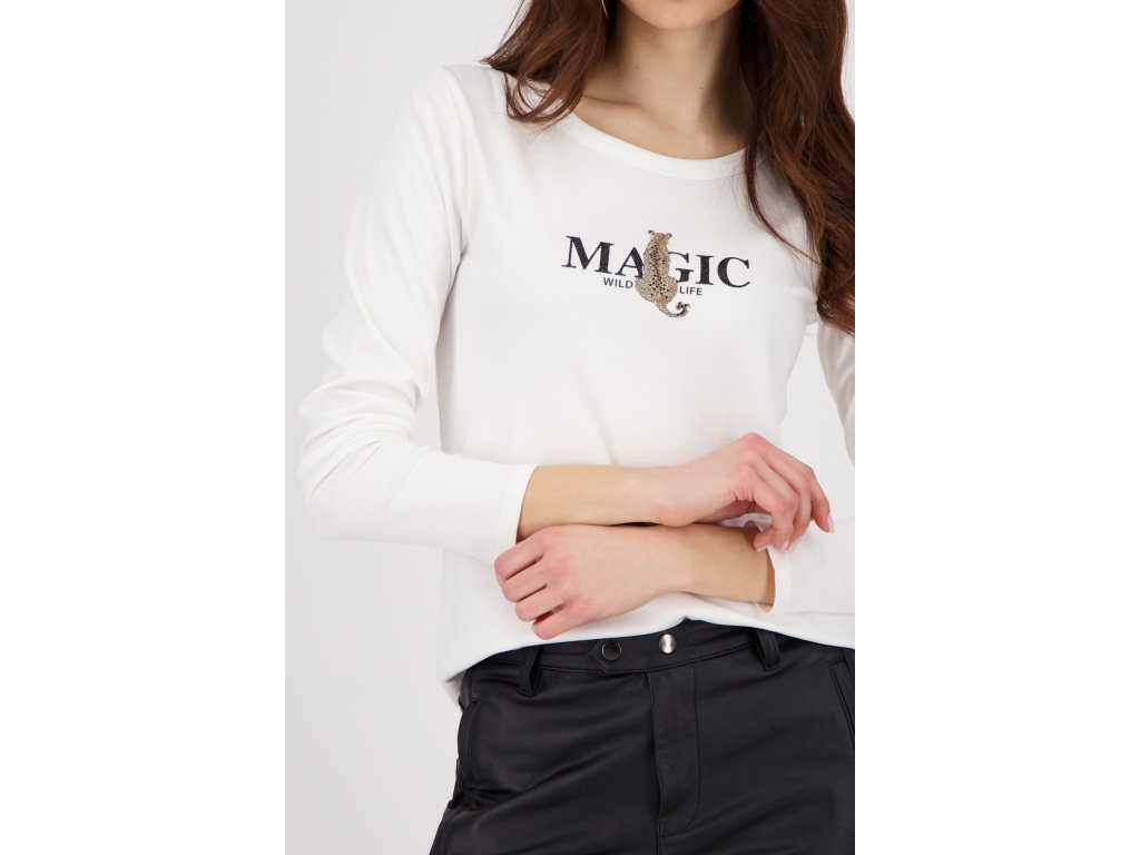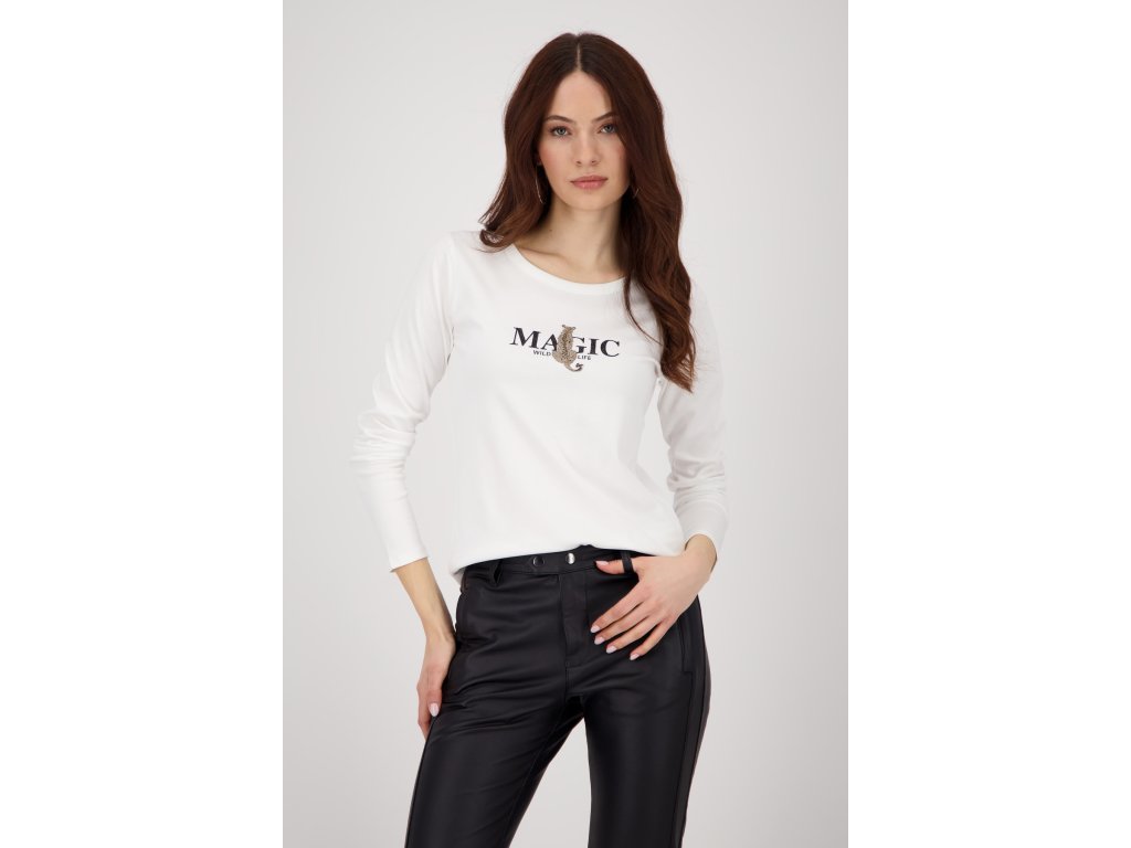 Bílé triko Monari s nápisem MAGIC a leopardem – jednoduché, ale s osobitým šmrncem.