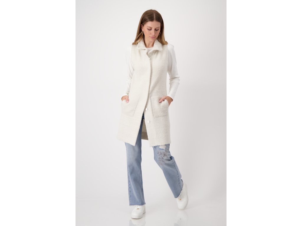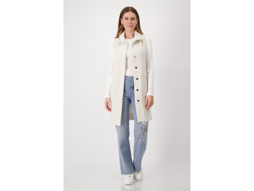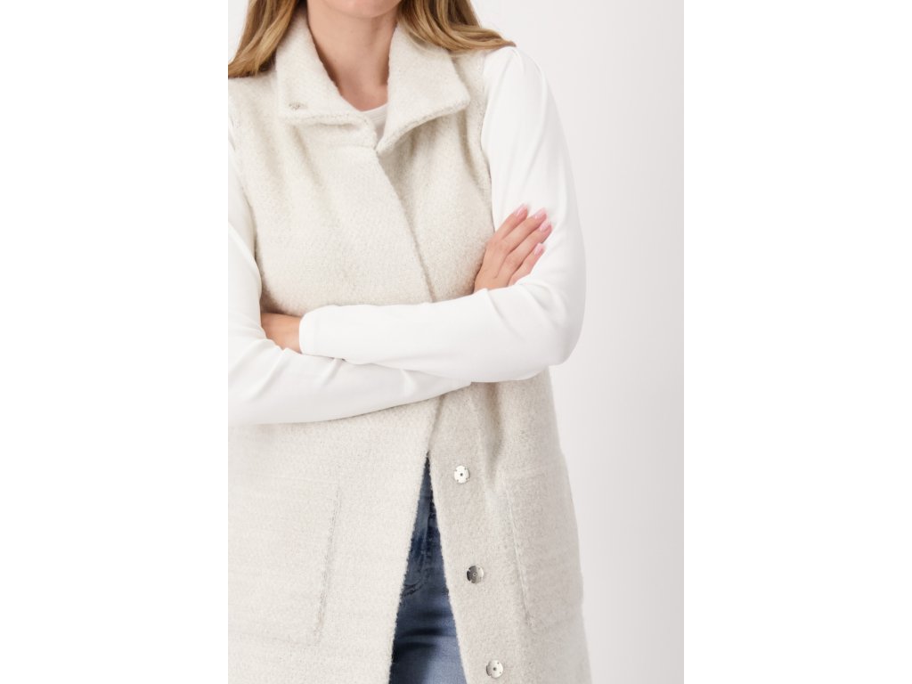 Elegantní písková vesta Monari s límcem a knoflíky je ideální volbou pro pohodlné a stylové vrstvení.