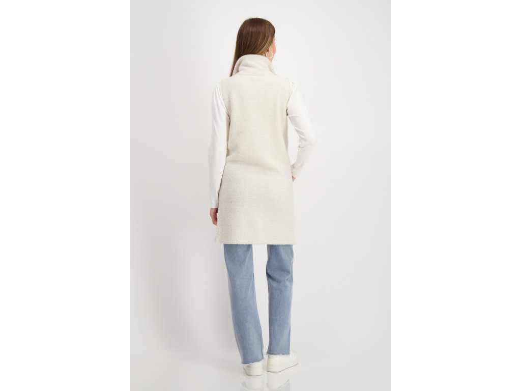 Dlouhá písková vesta Monari v moderním designu zaručuje pohodlí a styl. Má stojací límec a zapínání na výrazné knoflíky, které dodávají vestě jedinečný vzhled. Je vyrobena z měkkého, hřejivého materiálu a vybavena praktickými kapsami. Tento nadčasový kousek se hodí k vrstvení přes lehké svetry či trička a je skvělou volbou pro chladnější dny. Univerzální písková barva snadno zapadne do vašeho šatníku a dodá vašemu outfitu sofistikovaný nádech.